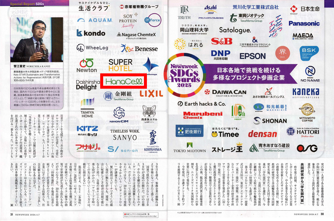 「SDGsアワード2025」についてはNewsweek日本版2026年4月7日号にも掲載されています