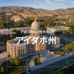 アメリカ合衆国の50州の中から、アイダホ州の地理や気候、名所などを紹介します。アイダホはロッキー山脈の中に位置し、林業や農業の他に鉱業が盛んで、さらに州全体で多種多様な宝石が取れる。ポテトで有名で、全米でも屈指の治安が良い州と言われている。