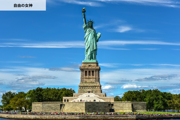 1886年にフランスから贈られたこの像は、アメリカの自由と希望の象徴です。