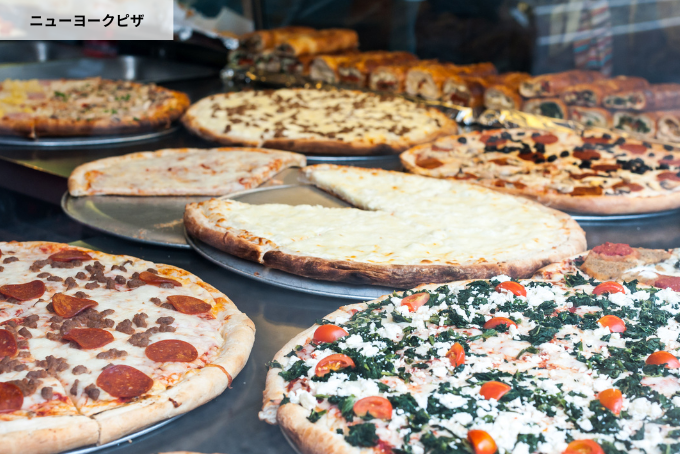 一切れずつ販売されるのが一般的で、カウンターで注文し、折りたたんで片手で食べるスタイルはニューヨーカーの定番。